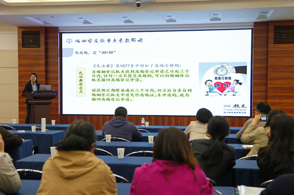 ????????《中華人民共和國民法典》是新中國成立以來第一部以“法典”命名的法律,是新時代我國社會主義法治建設的重大成果,民法典在中國特色社會主義法律體系中具有重要地位,是一部固根本、穩預期、利長遠的基礎性法律。袁勝寒主任以習近平總書記對民法典重大意義的論述作為開篇,提綱挈領地給大家介紹《民法典》的發展歷史、重大意義、創新內容等,讓大家了解《民法典》整體框架。同時從水利行業特點出發,給大家介紹水利行業以及工程建設等領域涉及《民法典》相關法律條款知識,讓與會人員進一步加深了對法律條文的理解和認識。隨后,事務所另外兩位律師結合具體案例,生動形象介紹了合同編、婚姻家庭編和繼承編的相關內容,為大家厘清在招投標過程中、各類合同訂立與履行過程中可能遇到法律風險,以及在日常生活中可能遇到的各類法律問題,豐富了大家的法律視野。會后,幾位律師還為一些同事進行了法律咨詢指導。